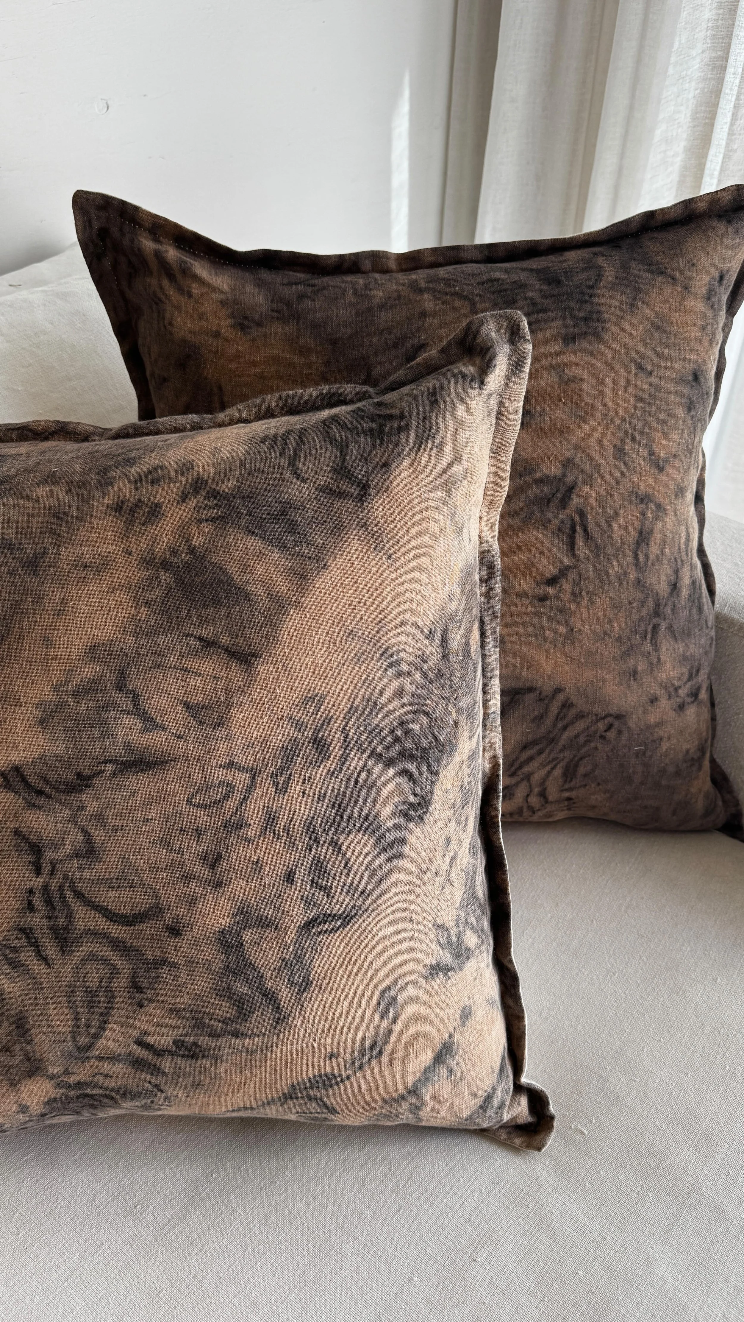 Slowly infusing natural colour onto 100% pure linen, each piece a living original artwork to adorn the home.